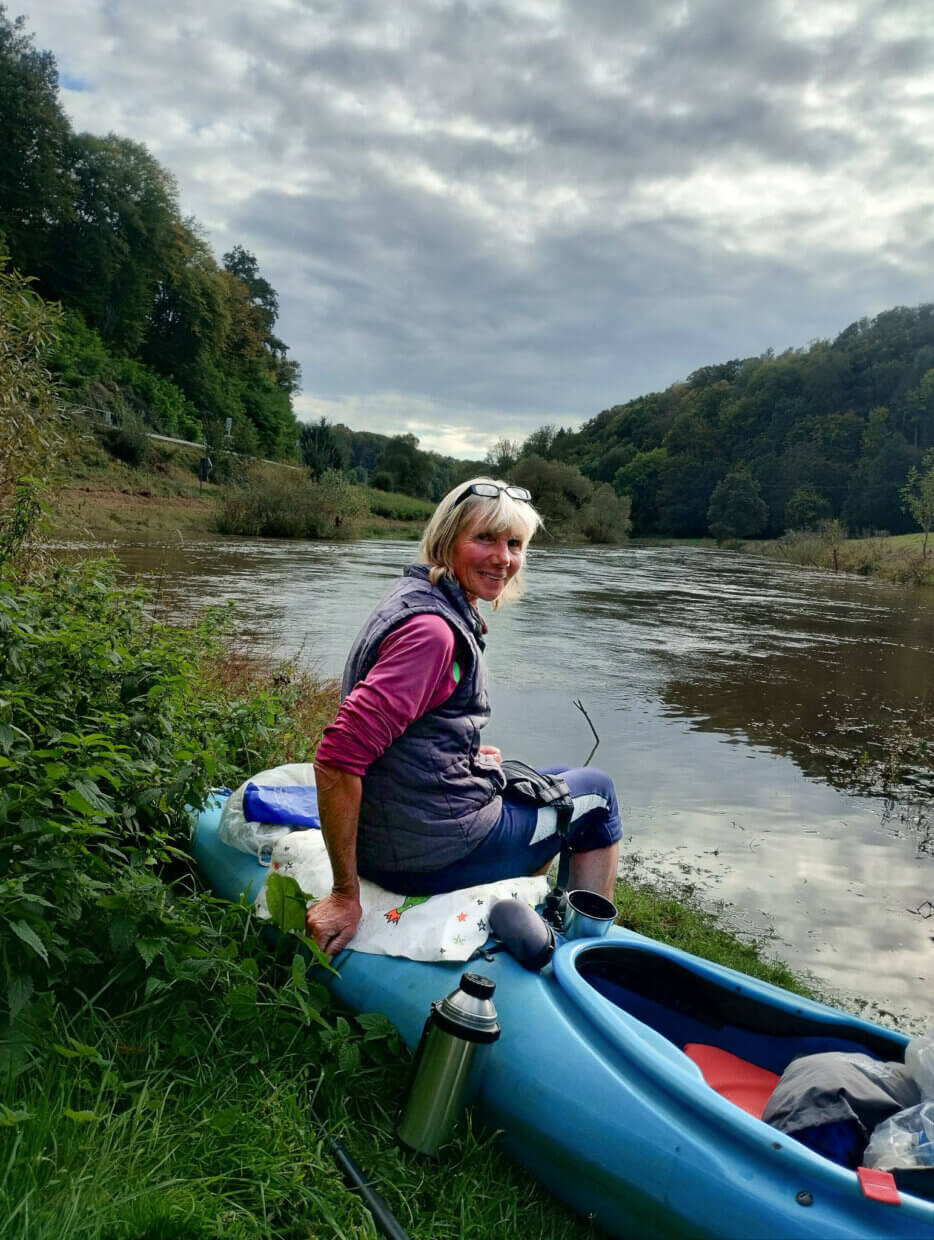 In dieser ganzen Zeit von 1992 bis 2021 hat sie ihre Touren nicht in ein Fahrtenbuch eingetragen. Die Fahrt war das Ziel, nicht die Bilanz. Auch wenn die Fahrt schon mal zermürbend sein konnte: „Ich hatte mal eine Fahrt, da hat es vier Tage nur geregnet. Am dritten Tag waren alle Brocken nass.“ Aber es gibt dann die anderen Momente: Wenn man die Natur genießen kann, sich mal auf eine Kiesbank legen kann, oder einfach schwimmen geht.