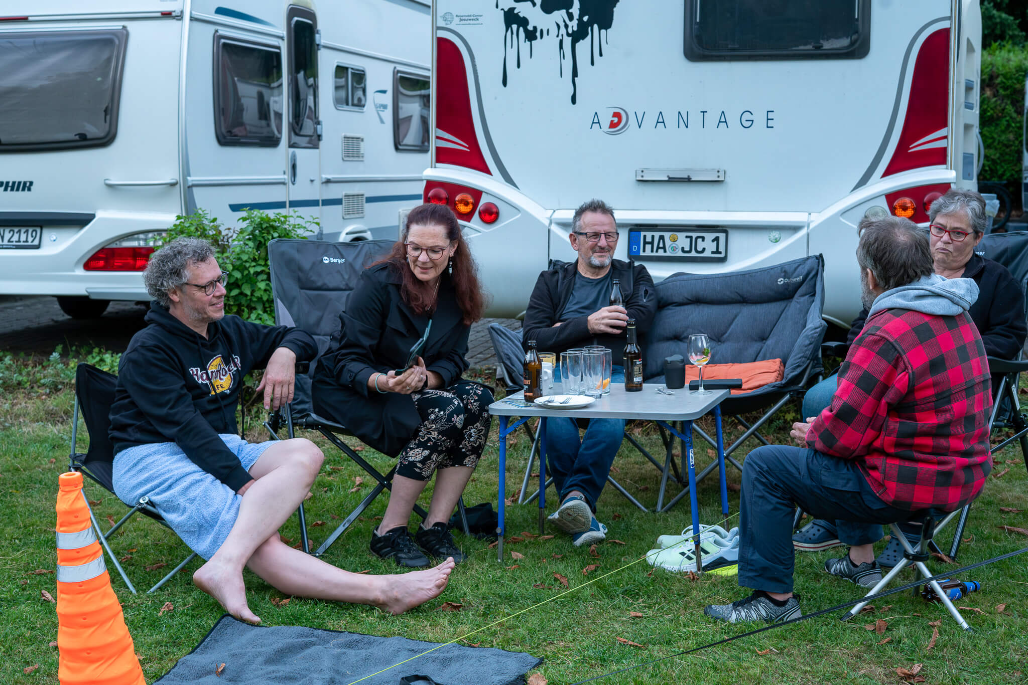 Am Morgen gab es noch zwei überraschend deftige Schauer, und dann wurde es wettertechnisch…. naja. So mittel. Macht aber nix. Man konnte draußen sein und sommerfesteln. Und davon gibt es Beweisfotos: